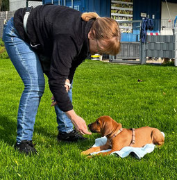 Das Wissen und die Leidenschaft zum Hundetraining habe ich durch meine eigenen Rhodesian-Ridgebacks entwickelt. 1999 zog meine erste Hündin Kimba (1999-2013) bei uns ein, welcher die drei weiteren Hunde Baaya (2004-2018), Dhima (2010-2023) und Enza (2013-2023), sowie insgesamt fünf Würfe aus eigener Zucht folgten. Seit März 2024 begleitet uns nun Fanya (geb. 1.2024) durch unser Leben. Durch die besonderen Eigenschaften dieser Rasse und die unterschiedlichen Charakterausprägungen meiner Hunde, begeisterte ich mich immer mehr für ihr Lernverhalten, verschiedene Auslastungsmöglichkeiten und diverse Hundesportarten. Bevor ich 2018 nach Studium an der ATN Hundewissenschaften mit meiner eigenen Hundeschule in die Selbstständigkeit startete, leitete ich insgesamt fünf Jahre im DVG Welpen- und Junghundegruppen an.